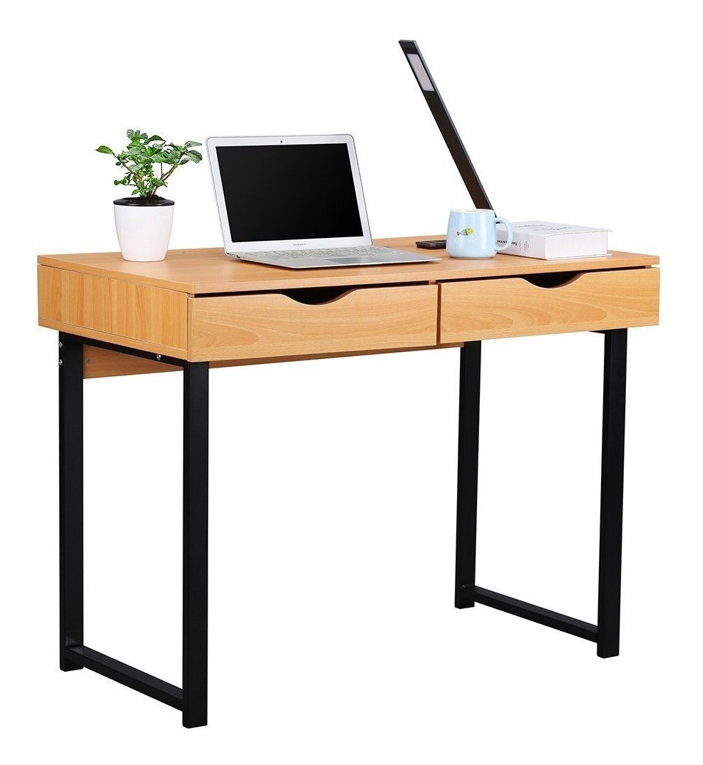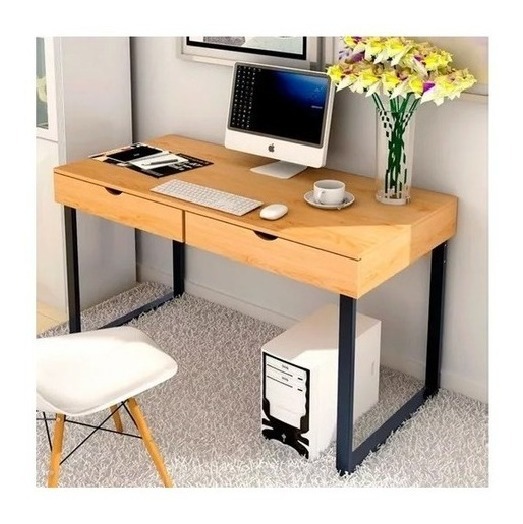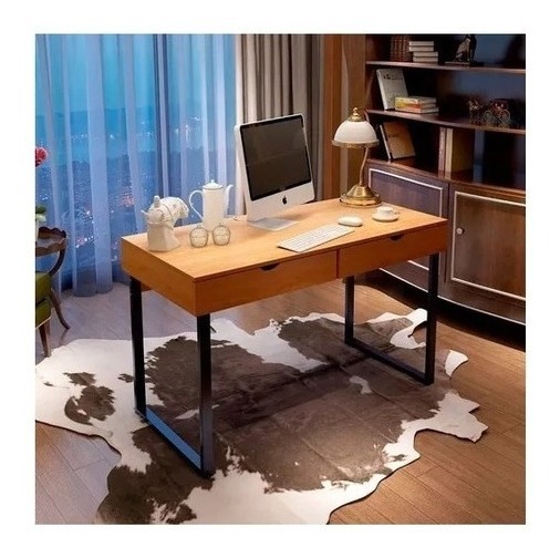 Escritorio Moderno 2 Cajones En Acero Madera Mdf Estilo Industrial