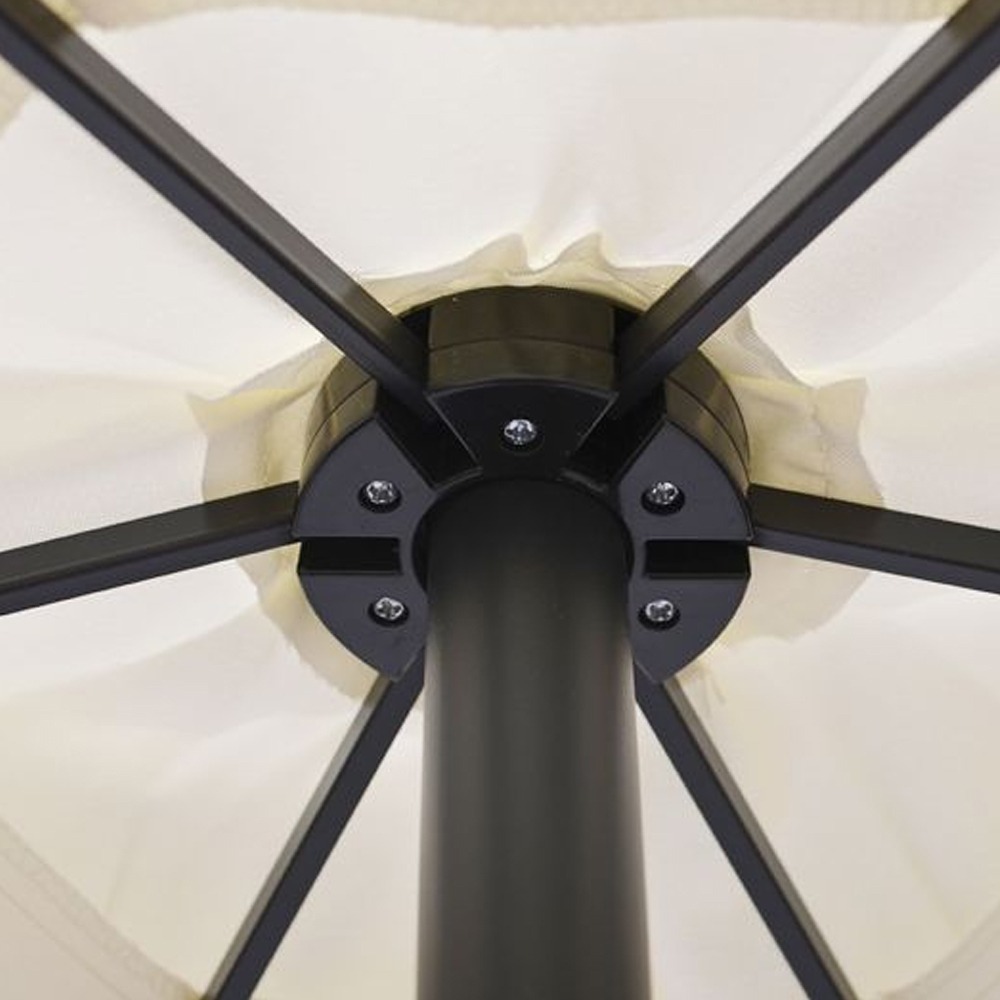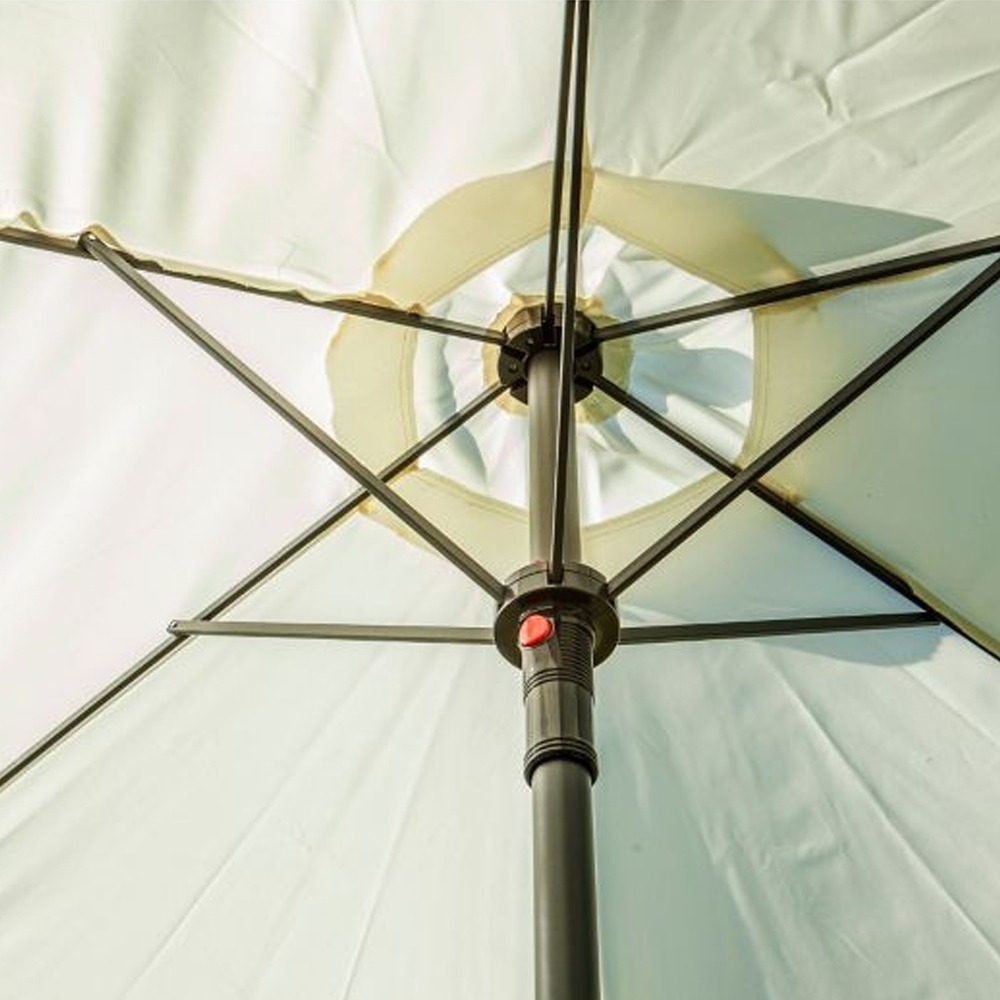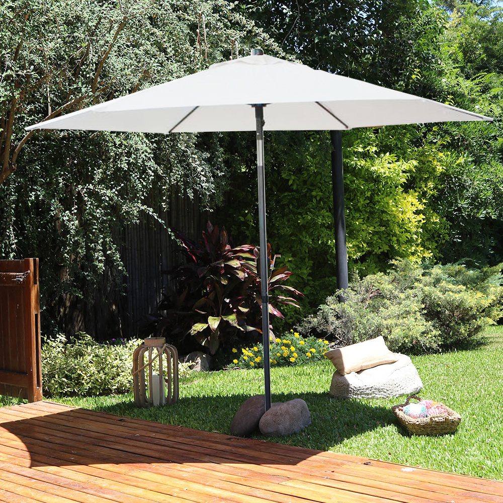 Esta Sombrilla es la mejor opción para usar en tu jardín u otro lugar al aire libre. La tela de la Sombrilla es de poliester con filtro UV y tiene regulador de altura. Se recomienda usar base (no incluida) para zonas con viento.